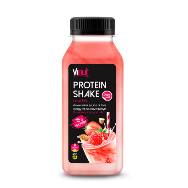 350ml VINUT Μπουκαλάκι Χαμηλού Λίπους Πρωτεϊνικό Αναδευματόποτο (Φράουλα & Γάλα Αμυγδάλου)